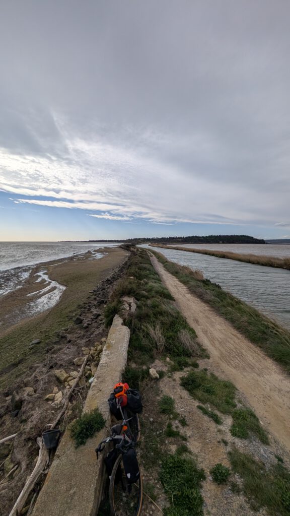 Alles in allem also keine gute Ausgangssituation. Wie konnte es nur soweit kommen, frag ich mich. Bezüglich den Welt-zu-Klump-hauern kann ich die Frage nicht beantworten, also grade bei Donald wollte es wohl die Mehrheit so. Was mich betrifft – ich konnte nicht stillsitzen und bin auf die Idee gekommen, mit dem Rad von Zuhause einmal quer durch Europa bis nach Süd-Portugal zu fahren. Vor knapp zwei Wochen ging es los und jetzt bin ich hier. Am Bodensee entlang zum Genfersee, dann nach Chambery und bei kräftig Neuschnee über das Chartreuse-Massiv ins Rohne-Tal. Dann durch 5 Tage Dauersturm über Montpellier am Mittelmeer entlang bis hier kurz vor die spanische Grenze.