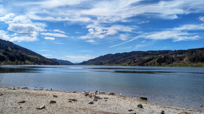 Doch irgendwann wird aus dem Trail eine schmale Teerstraße, auf der ich ziemlich angesaftet nach Hitisau hinunter rolle. Von hier nach Oberstaufen und am Alpsee entlang zurück nach Immenstadt, was soll da schon noch groß kommen? Hätte ich mir die Tourenplanung genauer angesehen, dann hätte ich bemerkt, dass die Runde 1200hm hat und mein Tacho erst gute 800 anzeigt – also noch 400hm und etliche Kilometer to go. Von da war’s dann das üblich Allgäu-Auf und -Ab, das einen langsam zermürbt wenn die nötigen Körner fehlen. Die letzte Prüfung war dann bei Oberstaufen hoch zur Wasserscheide Rhein-Donau, ab da waren die Muskeln endgültig leer.